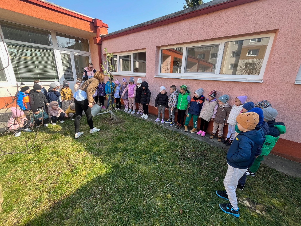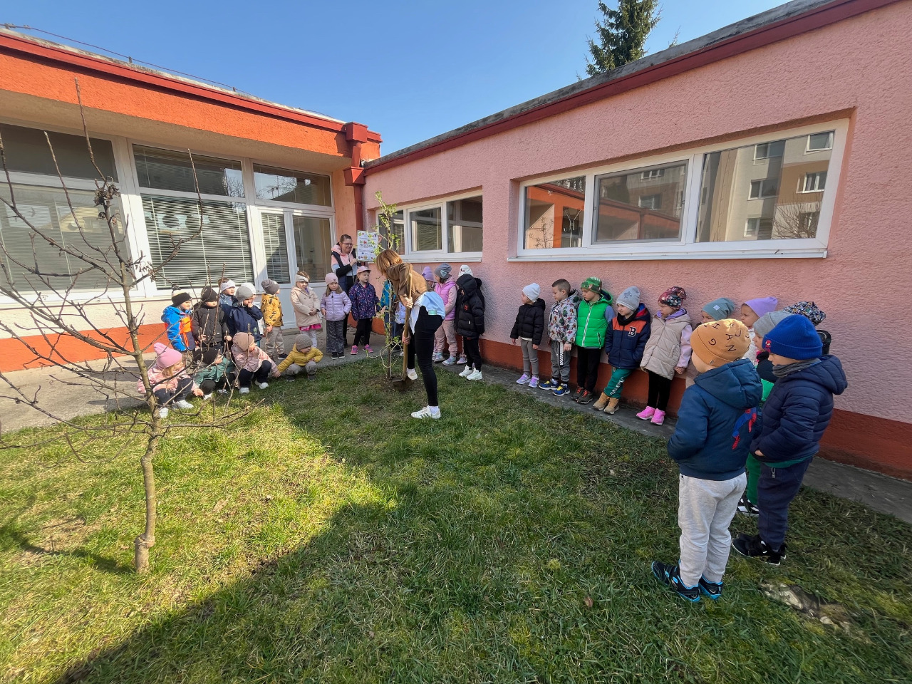 V rámci Školského ovocného programu sme si s deťmi zasadili na školský dvor "Ríbezľu červenú", odrodu JUNIFER, ktorá sa pestuje i v sadoch nášho dodávateľa ovocia a ovocných štiav, do Materskej školy.